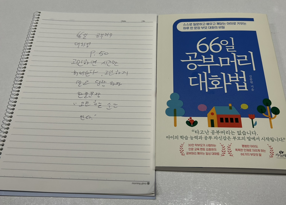 2.66일 공부머리 대화법 50p를 읽고 중3 필사