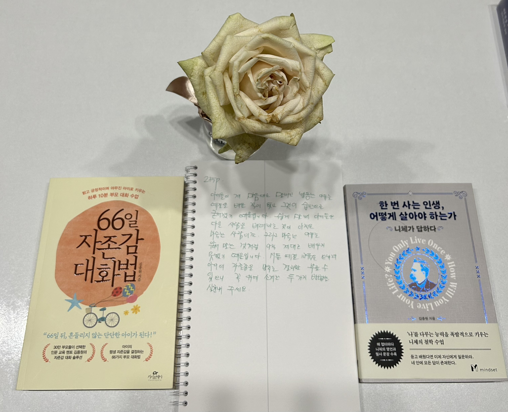 오늘의 시 낭송을 하며 휴대폰 작은 창을 따라 글을 읊고 아빠께 가기 전 업로드 후 재생하다 보니 깨알 같은 단어의 글자가 3 개 정도 다르게 발음했으나 그걸 다시 바꾸지 않아도 그 글에 가까워지는 모든 마음 다해 보이지 않은 길도 읽으며 갈 수 있음이 가장 예쁘게 나이 드는 사람의 숙연한 정리라는 것이 차라리 나를 나답게 보이는 것 같아 고치려 하지 않았다.