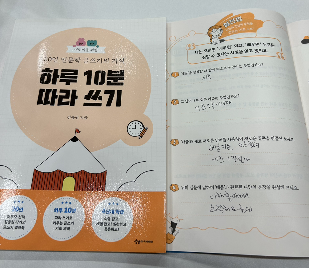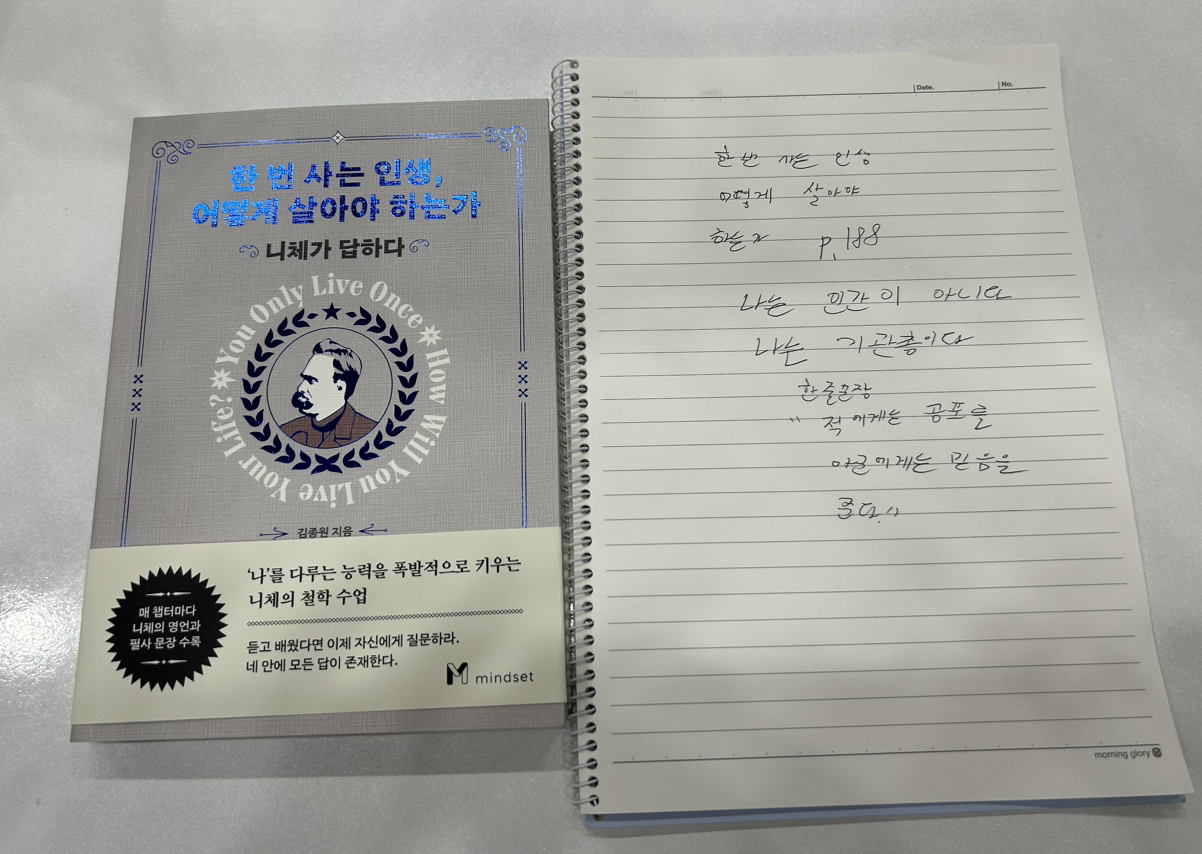 학원에 가기 전 만난 오늘의 필사 책 한 번 사는 인생 어떻게 살아야 하는가 의 페이지를 열어 지성의 글을 보고 아이는 영화 속 한 장면의 대사를 찾아 글로 썼다는 게 정말 위태한 작업이 아닐 수 없다.
