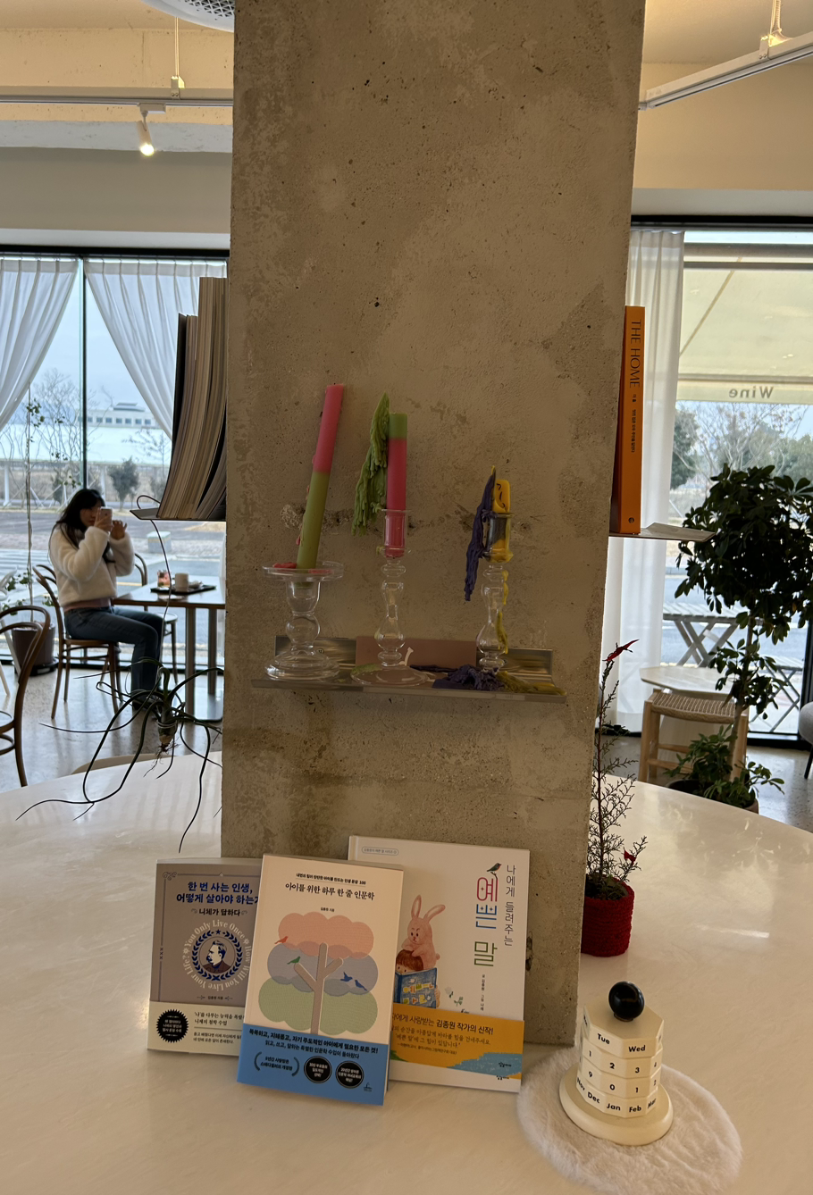 카페에 도착해 딱 10시 30 분 오픈 런을 기다리는 10분 동안 바람이 살짝 불어 오는 흐린 하늘과 주변의 공기를 느끼며 나와 함께 하는 우리의 클래식 을 시작하는 바로 지금 이 순간들이 함께 한다. 내리다 그친 비에 젖을까 새 책을 고이 안고서 나는 나의 자유를 아이는 그러한 나와 아이를 인정하는 딸과의 젊음속에 너와 나의 발걸음이 존재한다. 그간의 깊은 쉼이 지나 바람결에 가능한 외출 산책을 귀하게 맞이하는 동그라미테이블에서만 볼 수 있는 자연과 공간의 조화를 느껴보기 좋은 곳이다.