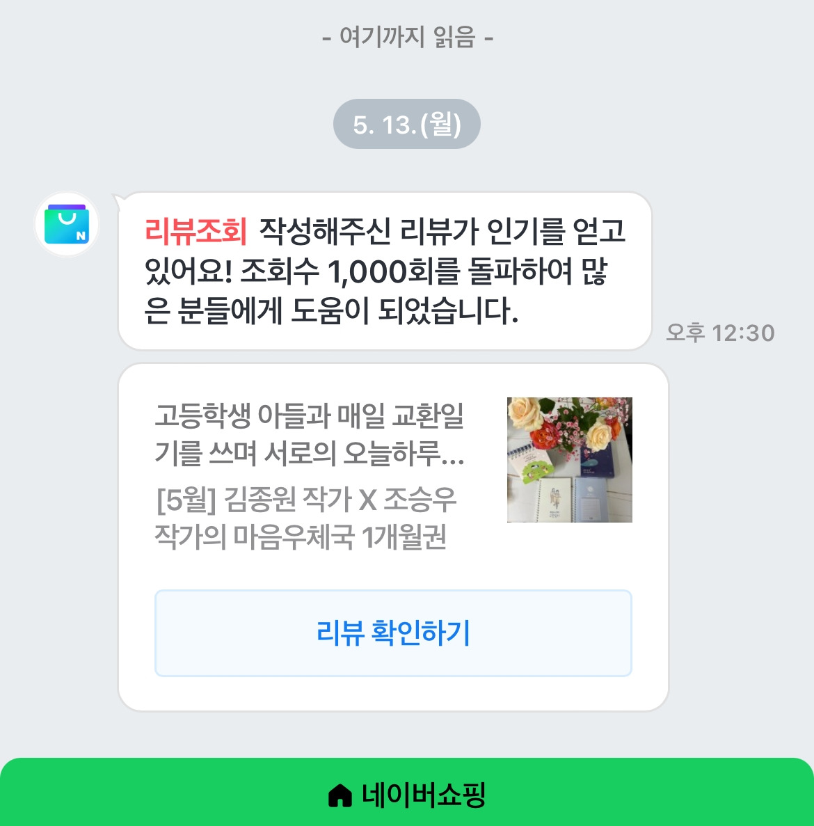 인증과 가입 절차가 끝나면 늘 재구매 확인 요청 알림이 오는데 리뷰 쓰기라는 형식이 있어 내가 느낀 경험들을 글과 사진으로 작성해 올렸는데 가끔 조회수를 알리는 문자가 올 때 많이 반갑다. 지난번에는 500 건오늘은 1000 회 이상의 조회를 알리는 돌파 문자가 도착했다.