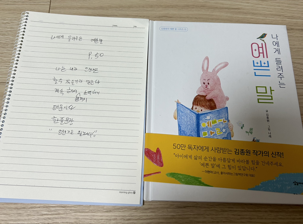 2. 나에게 들려주는 예쁜 말 50p를 읽고