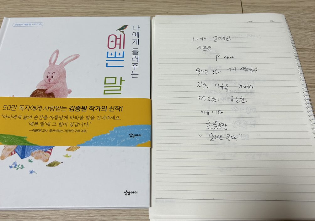 1. 나에게 들려주는 예쁜 말 44p 를 읽고