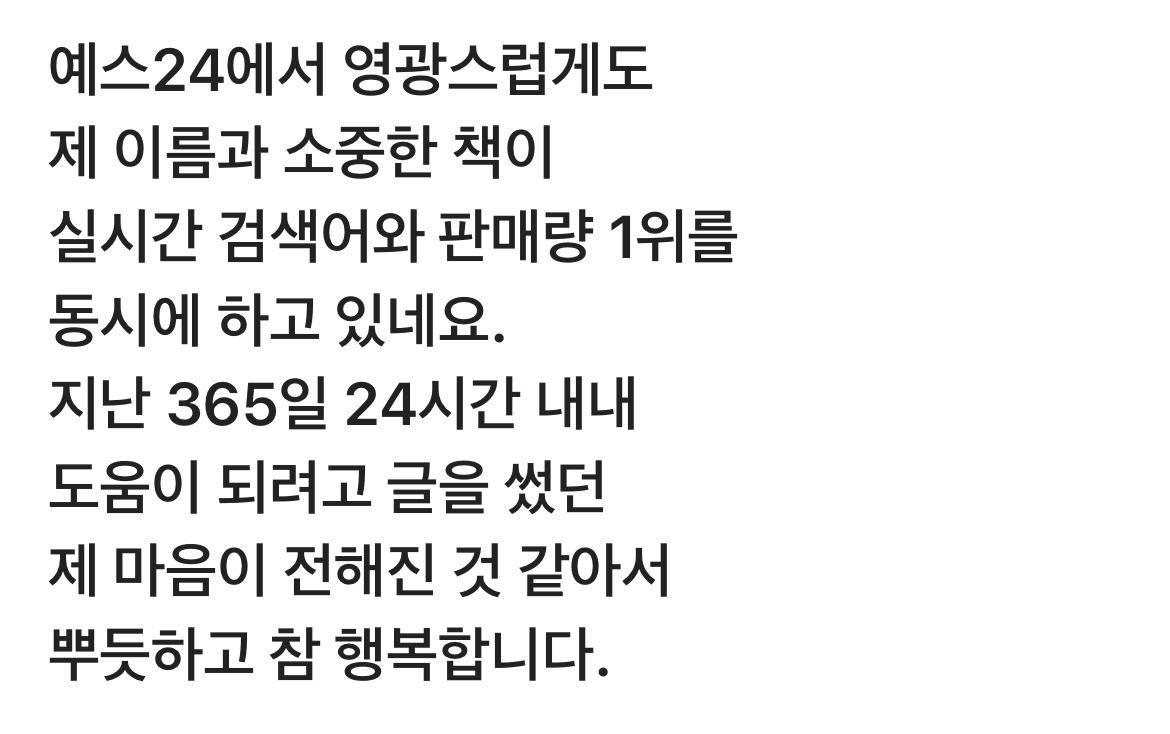 인생에서 가장 행복한 순간을 실천하며 글을 쓰는 유북 비즈 작가 사색가 김주영입니다. 따스한 삶을 위하여 좋은 생각과 예쁜 글을 쓰고 희망을 말하는 필사 낭송 글을 사랑하는 사람