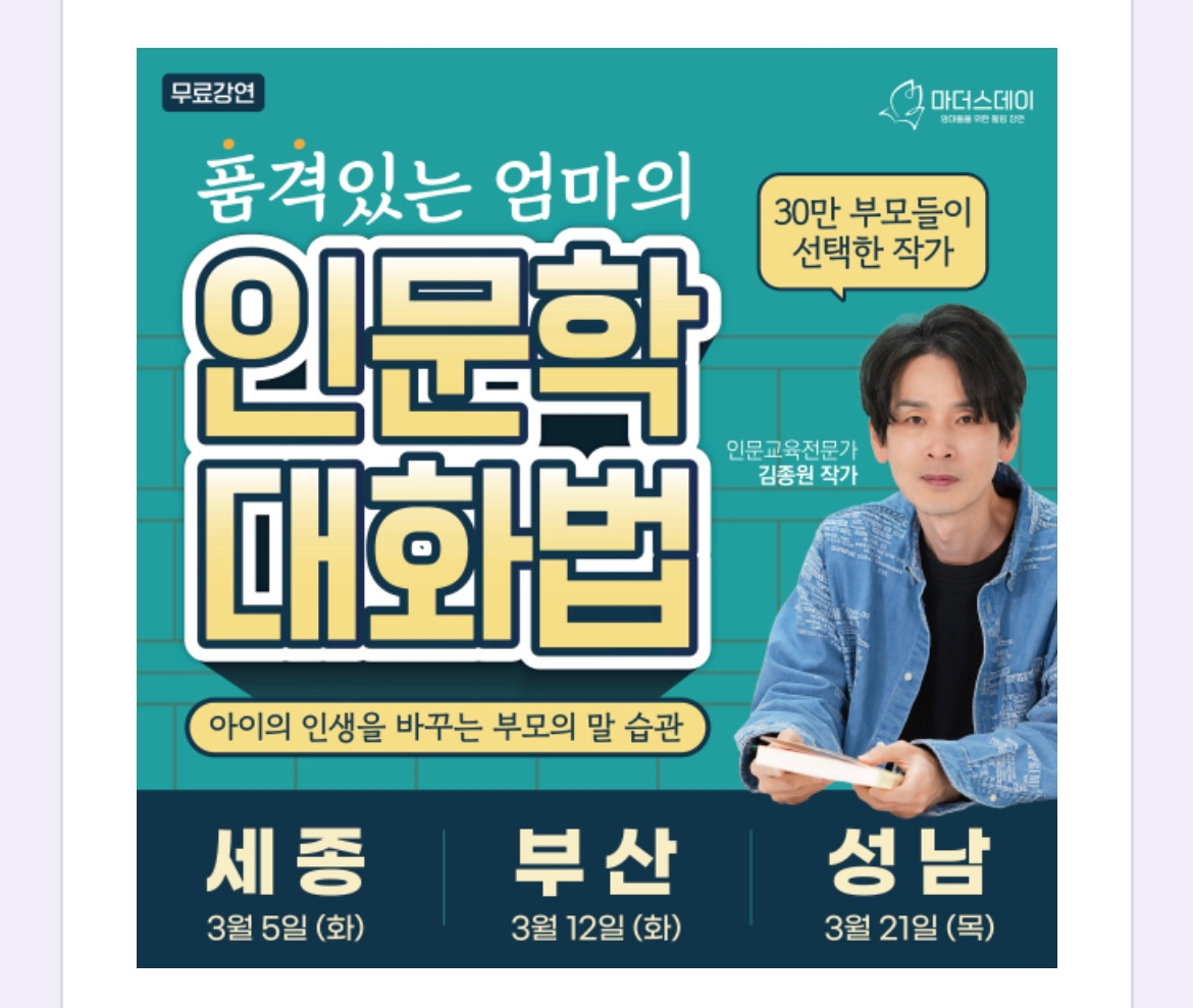 3. 품격 있는 엄마의 인문학 대화법 무료공개 강연소식과 신청안내입니다
