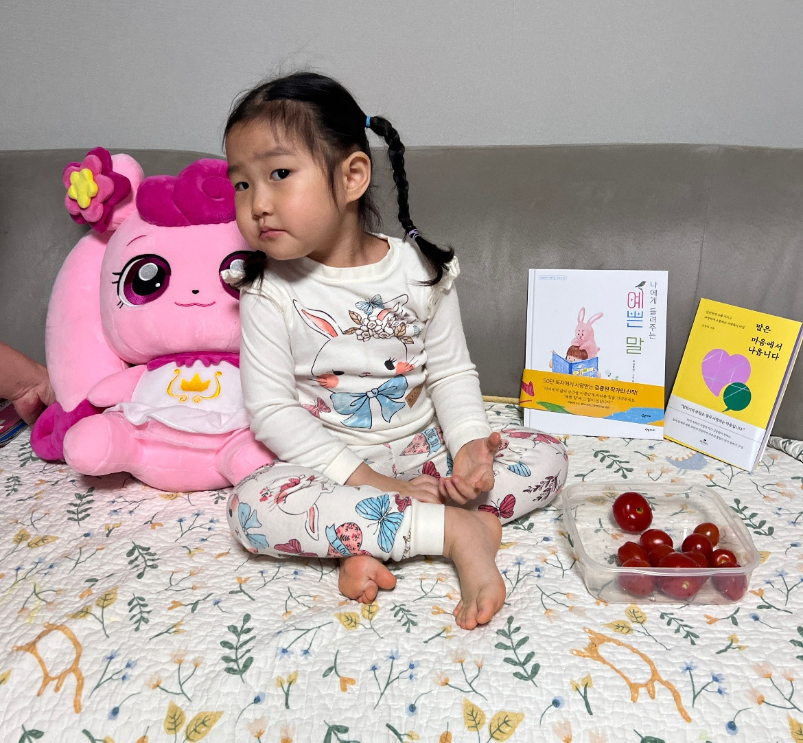 어린이 집 다녀와 크고 작은 모양이 다른 유형의 토마토를 즐기며 ‘사과 토마토’라는 단어를 찾아내는 최연소 어린이 맛 감별단 도 있으니 세상에 천국의 꽃밭에 앉아 지성과의 따로 없을 토기 그림이 그려진 동화책 과 똑 닮은 토끼 캐릭터 실내복의 닮은 그림이며 언제 어디에서나 한결 같은 다정스러운 오후가 이어진다.