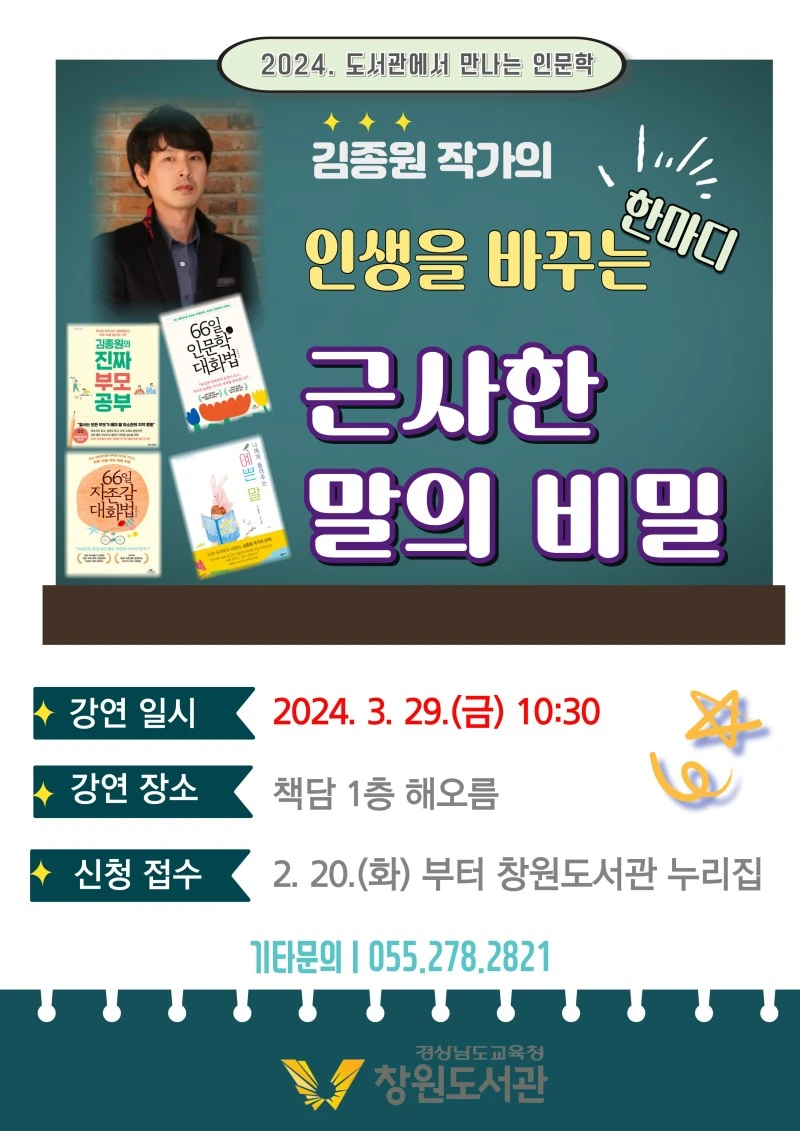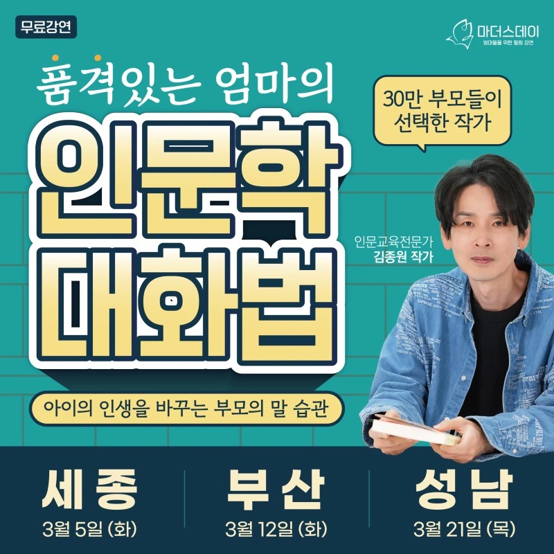 김종원 작가님 꽃 피는 3월 공개 인문학 강연소식 입니다