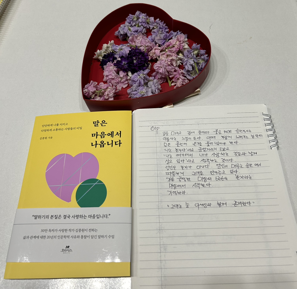 마침 꼭 필요한 귀한 공간에 인사를 드릴일이 있었고 그렇게 좋은 글로 쓰인 마음을 전달할 수 있어 감사했다. 그렇게 향할 수 있어 또 만나는 순환하기가 좋아 김종원 작가님 신간 이어령과의 대화, 말은 마음에서 나옵니다 이렇게 최신작 2권으로 드릴 수 있는 내 삶에서 준비된 일상이라서 가치를 헤일 수 없이 가능한 내 마음이 얼마나 기뻤는지 모른다. 작지만 늘 다시 만나야 하는 우리의 믿고 보는 길이 이어지는 날이라서.