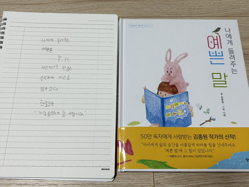 2. 나에게 들려주는 예쁜 말 32p 를 읽고 고1 필사