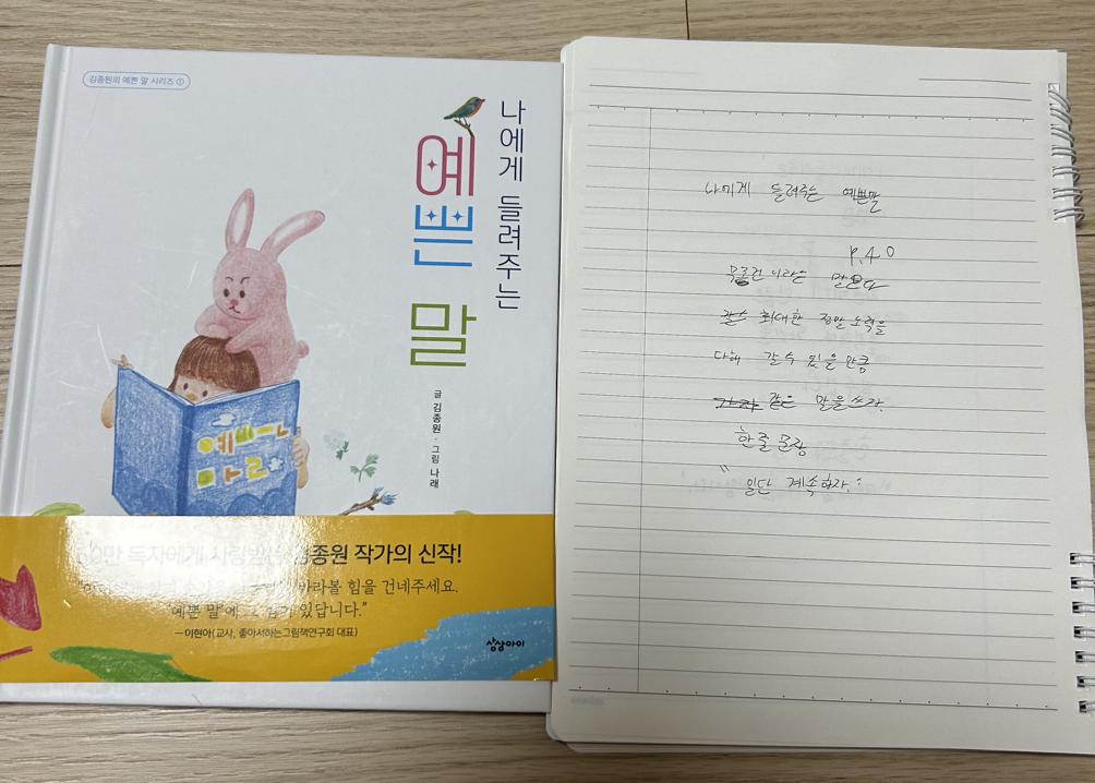 2. 나에게 들려주는 예쁜 말 40p를 읽고 고1 필사