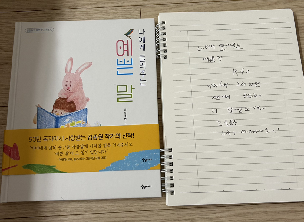 2. 나에게 들려주는 예쁜 말 40p를 읽고 고1 필사