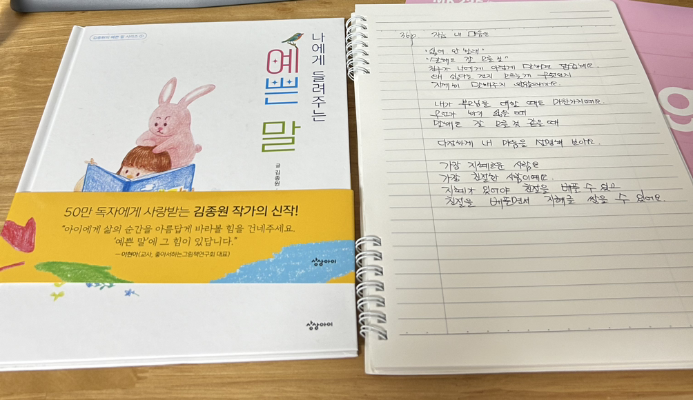 2. 나에게 들려주는 예쁜 말 16p를 읽고 고1 필사
