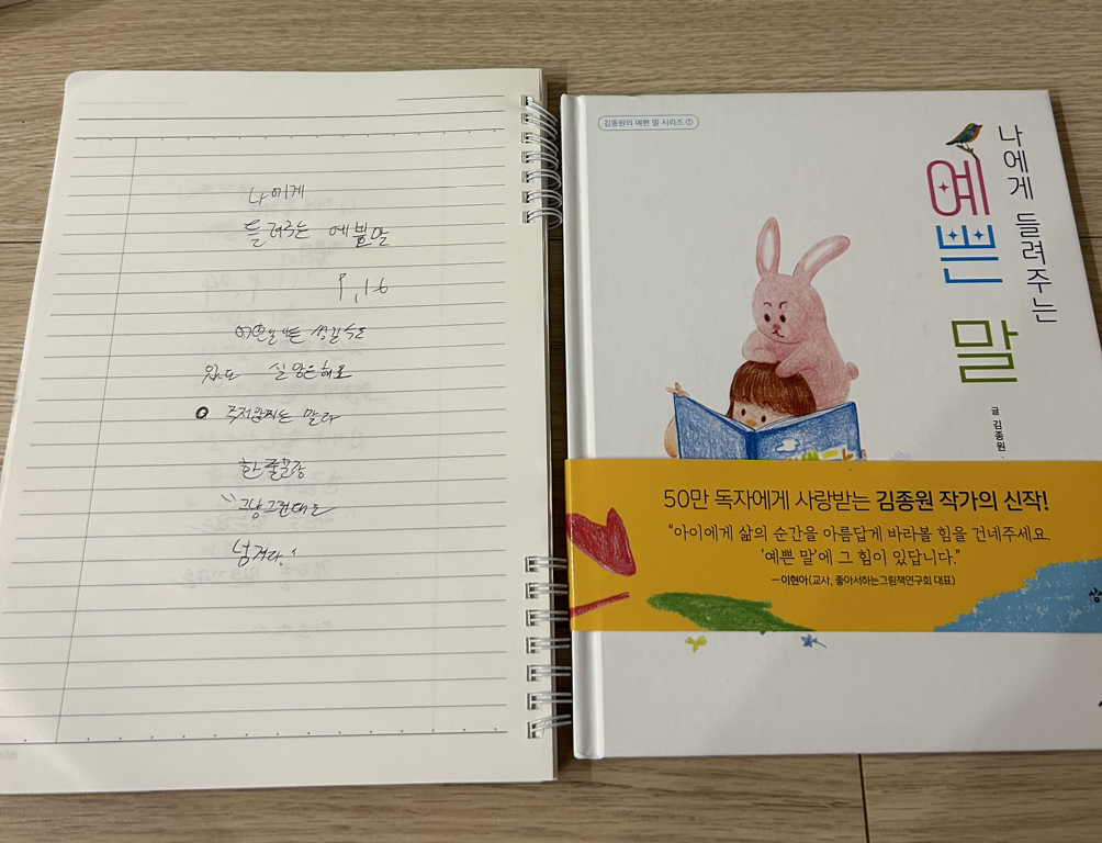 2. 나에게 들려주는 예쁜 말 16p를 읽고 고1 필사