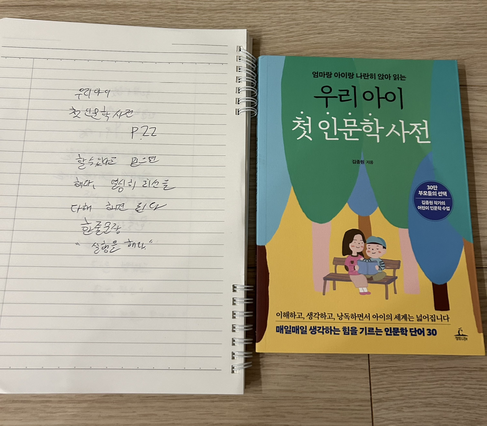 2. 우리 아이 첫 인문학 사전 22p를 읽고 고1 필사