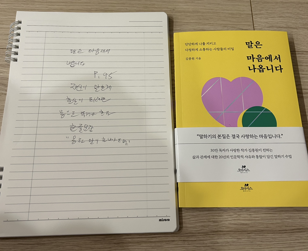 2. 말은 마음에서 나옵니다 95p를 읽고 고1 필사