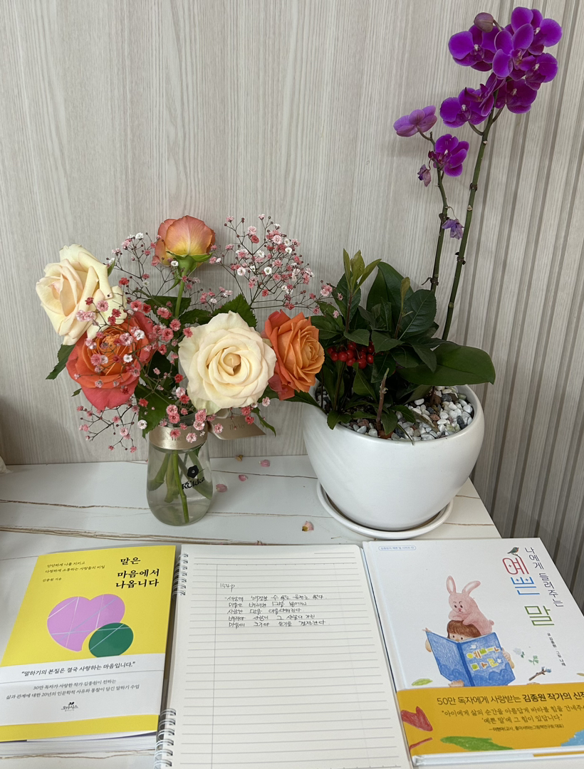 보내는 중 기쁜 소식을 받는다. 한 학교 도서관이 최근리모델링 공사를 했는데 집에 있는 새 책들을 이곳으로 옮길 수 있을 것 같다. 전체 1.2.3 학년 각 각 한 반씩 있는 작고 귀여운 중학교라서 예쁘고 깊은 지성의 내 책이 갈 수 있는 새길이 생긴 거니까. 울다가 웃다가 창밖의 햇살을 보며 얼굴은 웃고 눈에는 눈물꽃이 피어 마르지 않아도 나를 스쳐주는 이들이 있으니 난 계속 울어도 아무렇지 않아 괜찮다.