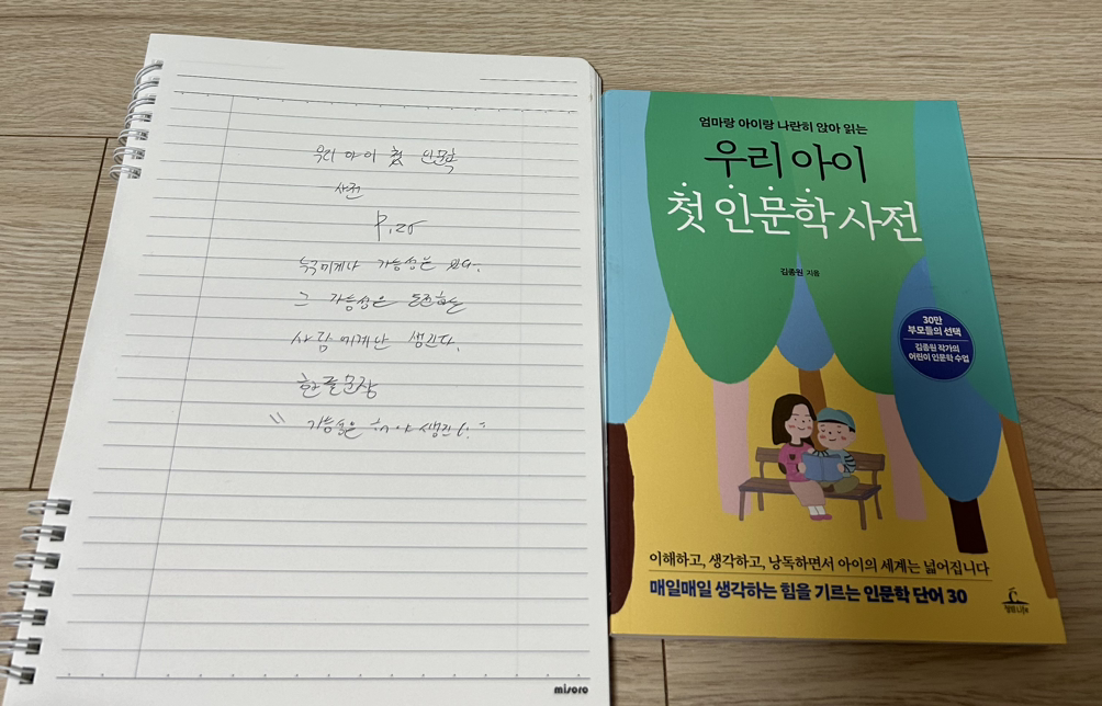 2. 우리 아이 첫 인문학 사전 25p 를 읽고 고1 필사