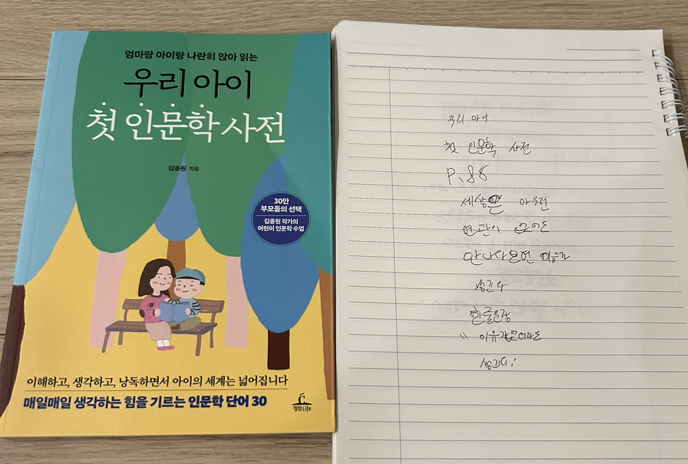 2. 우리 아이 첫 인문학 사전 86p를 읽고 고1 필사