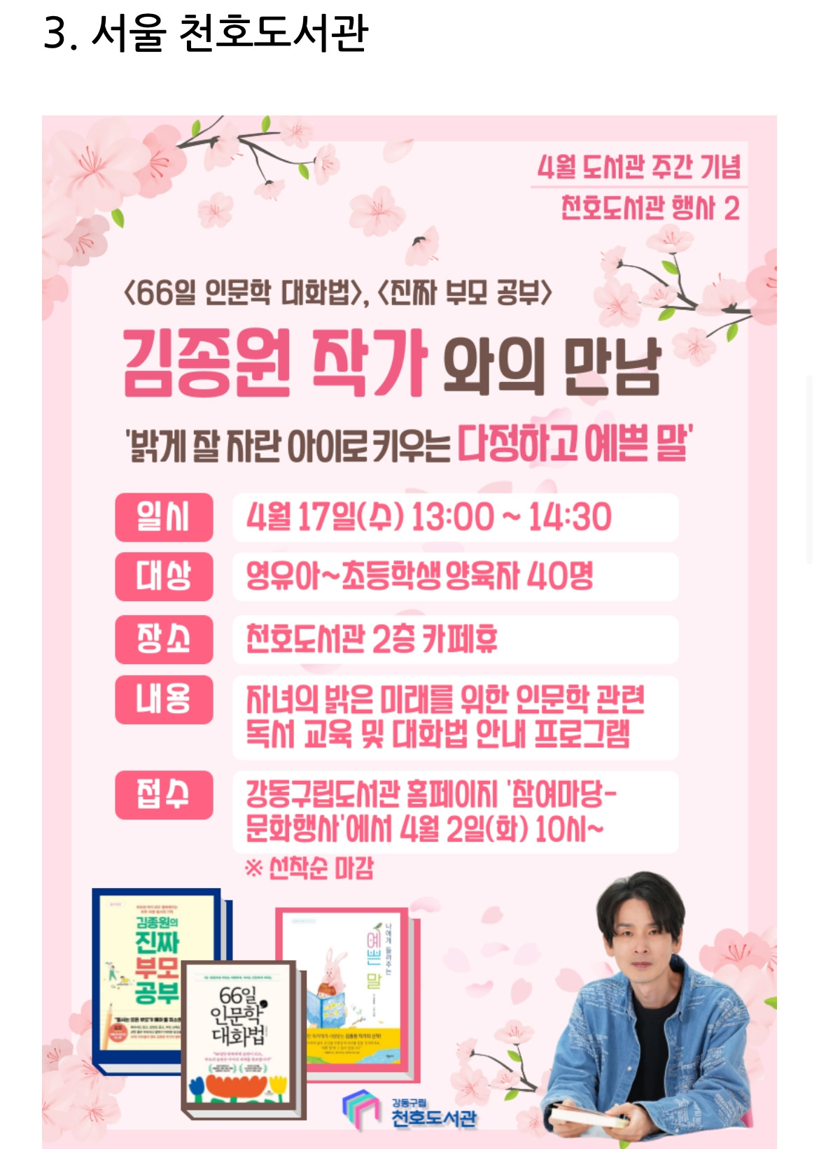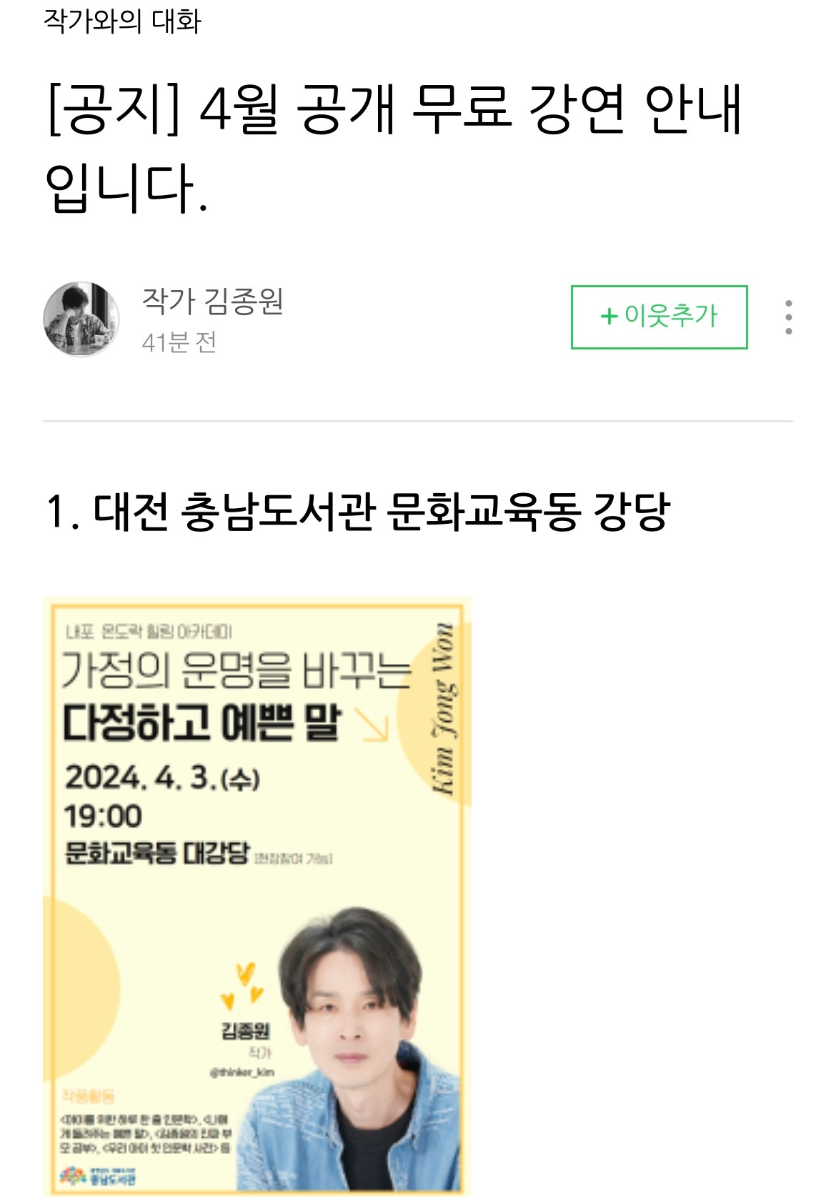 4월 김종원 작가님 귀한 일정과 강연길 안내합니다~