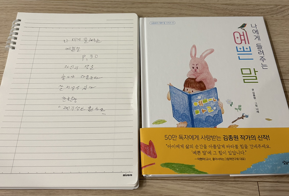 2. 나에게 들려주는 예쁜 말 30p를 읽고 고1 필사