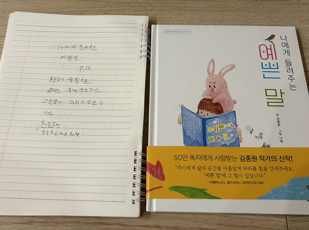 2. 나에게 들려주는 예쁜 말 16p 를 읽고 고1 필사