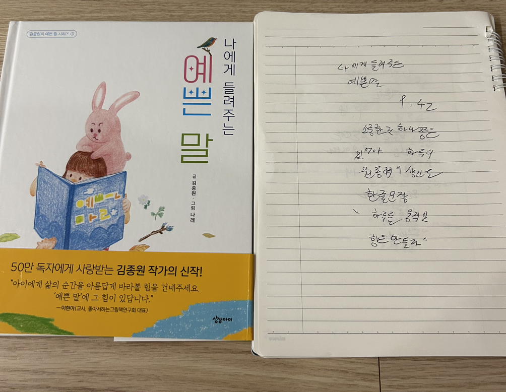 1. 나에게 들려주는 예쁜 말 42p를 읽고 고1 필사