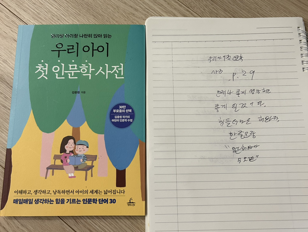 3. 우리 아이 첫 인문학 사전 29p를 읽고 고1 필사