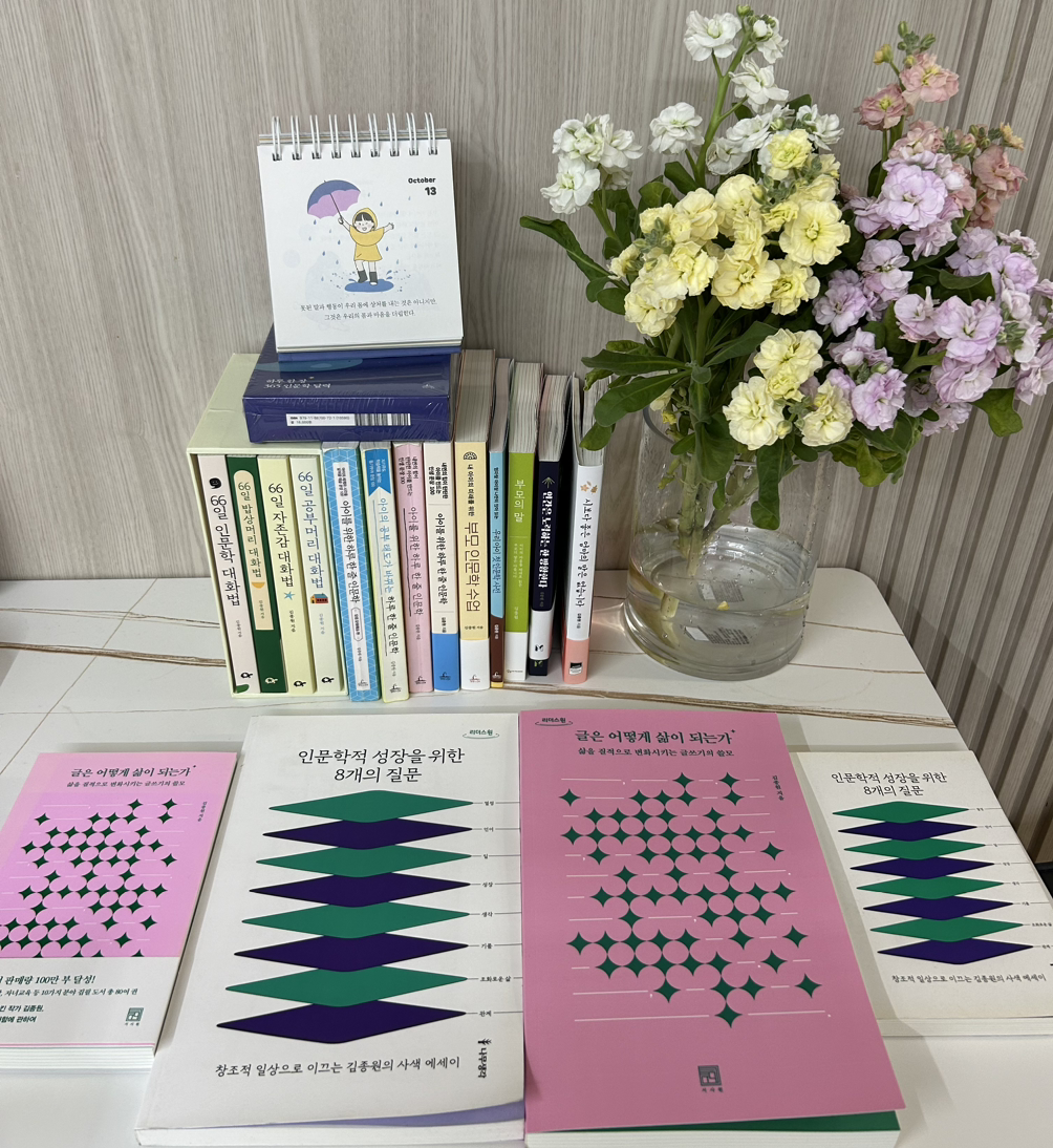 알고 오는 타이밍처럼 박자가 맞춰지는 잔잔한 생의 파도를 타는 음악처럼 2020 년 김종원 작가님의 부산강연에서 <인문학적 성장을 위한 8개의 질문> 출간 책에 사인을 받으며 나는 아까워 펴지 못 한 책을 꺾어단단하게 펼쳐 친필로 사인해 주시던 그날의 기록이 책에 남아 살고 있으니 나는 그날 그 순간을 지금도 생생하게 기억하며 그날이 바로 어제처럼 가깝게 느껴진다.
