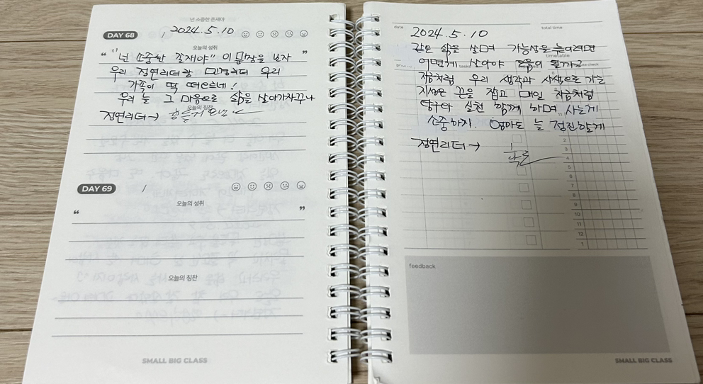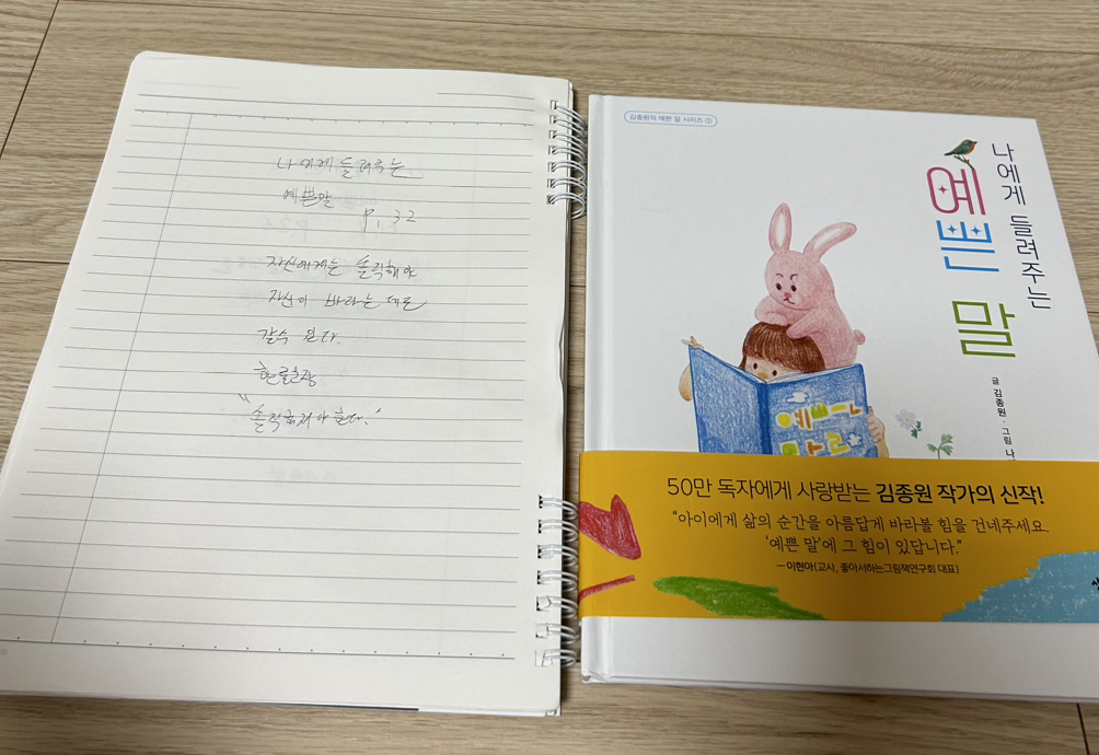 2. 나에게 들려주는 예쁜 말 32p를 읽고 고1 필사