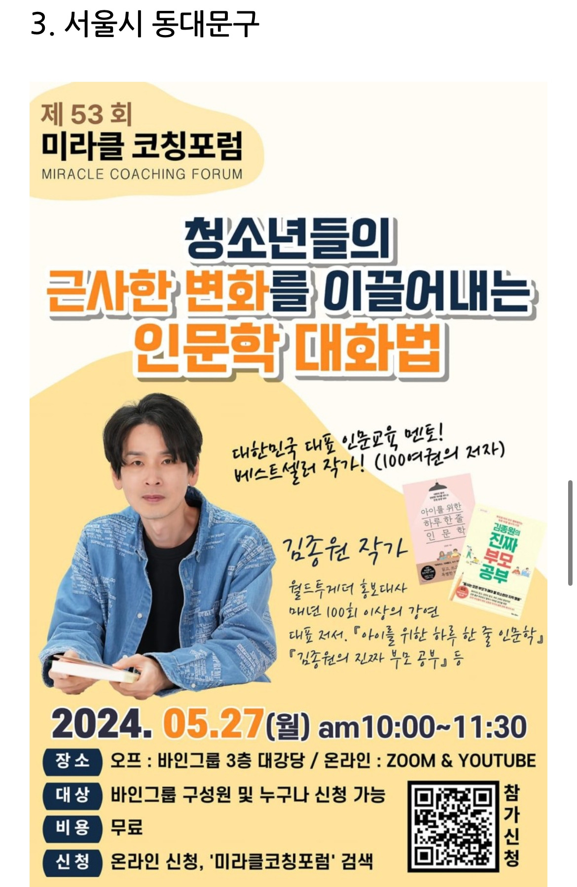 김종원 작가님 5월 함안, 동대문구 인문학 강연