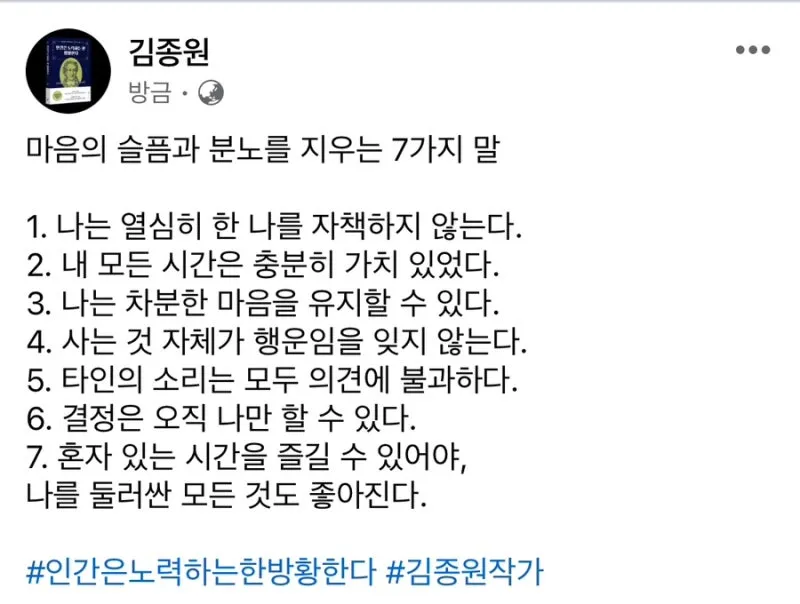 마음이 자꾸 예민해질 때, 위에 소개한 글을 읽으며 소중한 마음을 따뜻하게 해주세요. #김종원 #김종원작...