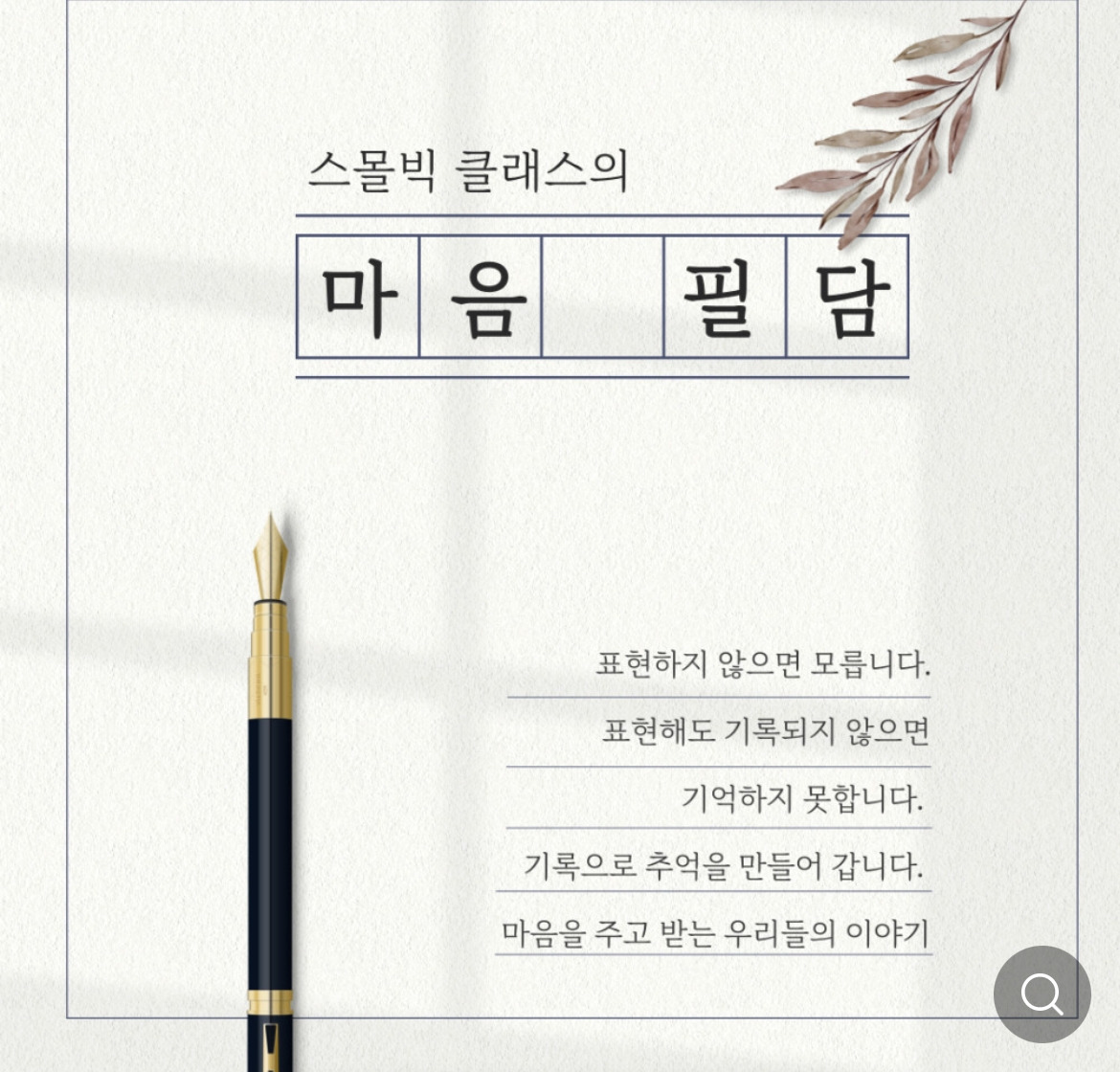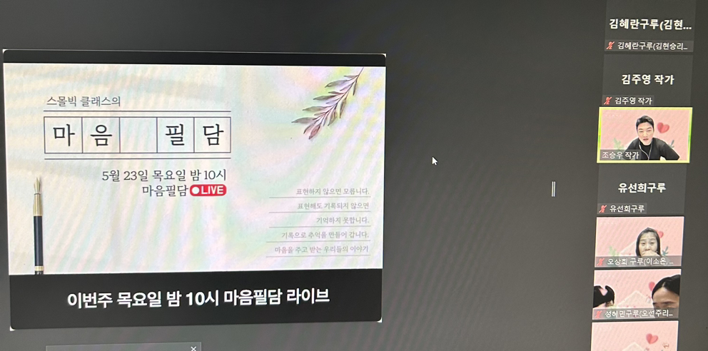 3. 마음 우체국 마음 필담 나도 유튜브에 출연하는 주인공이 될 수 있어요 강연 알림 설정 (스몰빅 클래스)