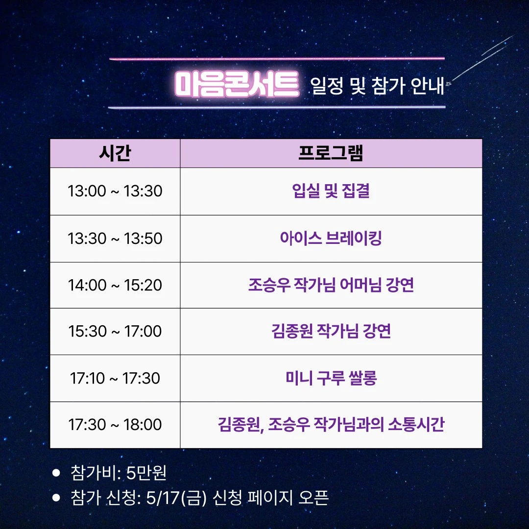 2. 김종원 조승우 작가님 마음 콘서트 보러가기