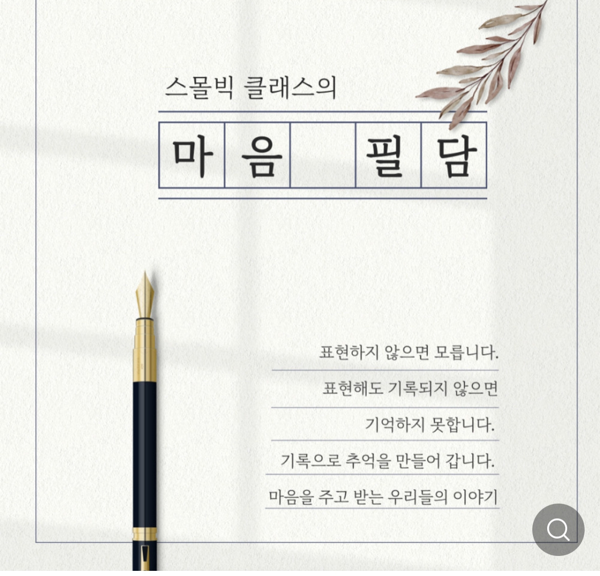 3. 마음 우체국 마음 필담 나도 유튜브에 출연하는 주인공이 될 수 있어요 강연 알림 설정 (스몰빅 클래스)
