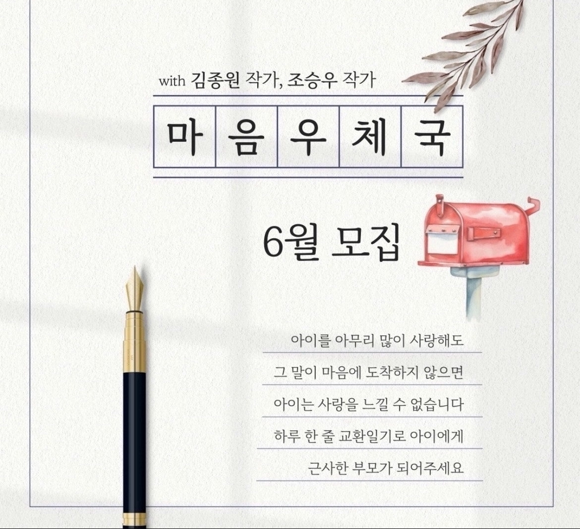 김종원 작가님 6월 부산,보령 강연, 마음 우체국 6월 모집 마감