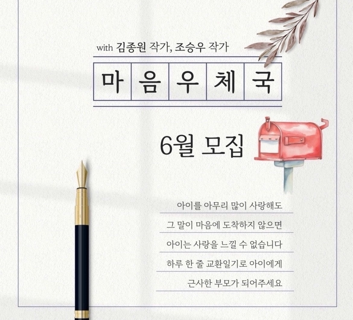 김종원 작가님 무료 인문학 강연, 마음 우체국 6월 모집 마감 안내