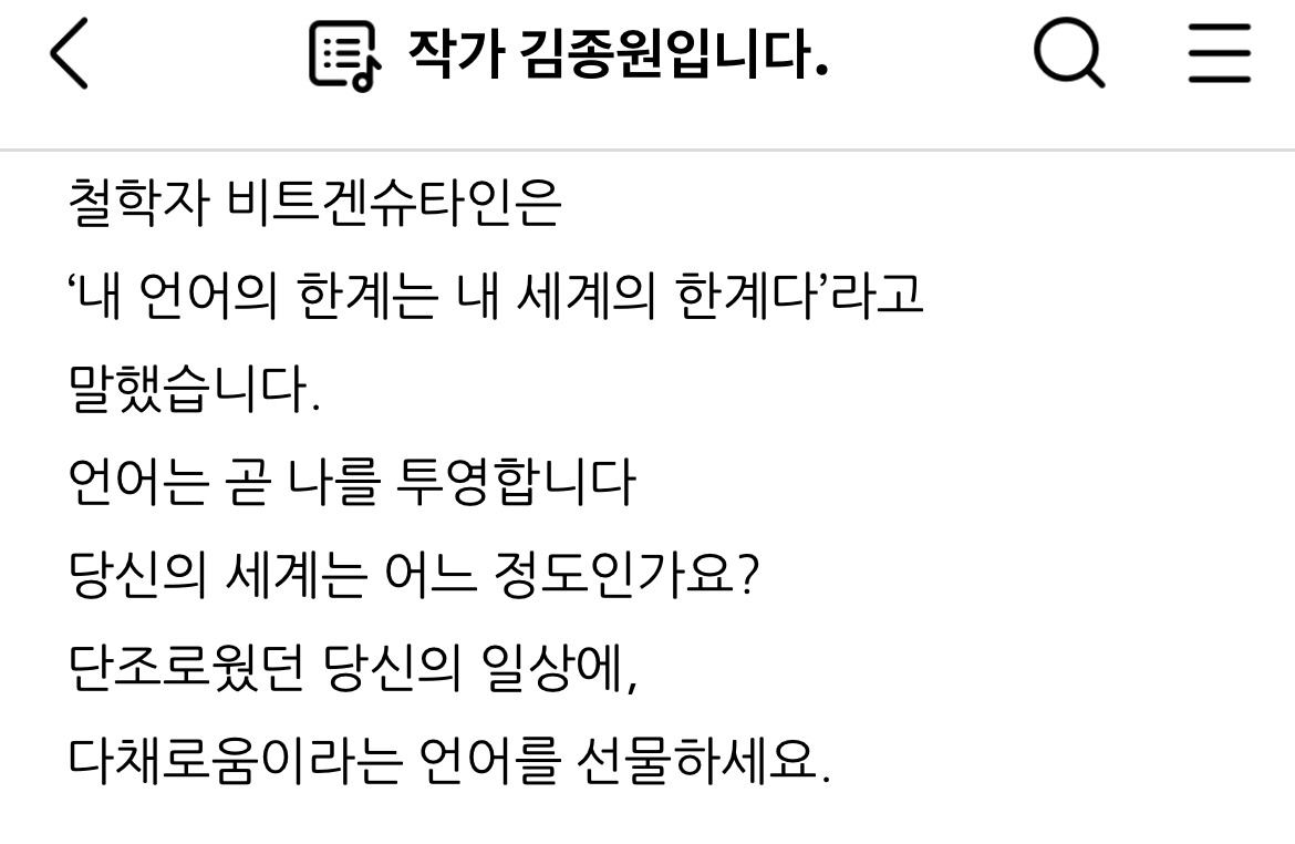 인생에서 가장 행복한 순간을 실천하며 글을 쓰는 유북 비즈 작가 사색가 김주영입니다. 따스한 삶을 위하여 좋은 생각과 예쁜 글을 쓰고 희망을 말하는 필사 낭송 글을 사랑하는 사람