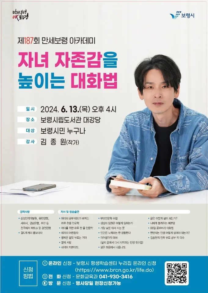 6월 13일 목요일 오후 4시 보령 김종원 작가님 인문학 강연 안내~