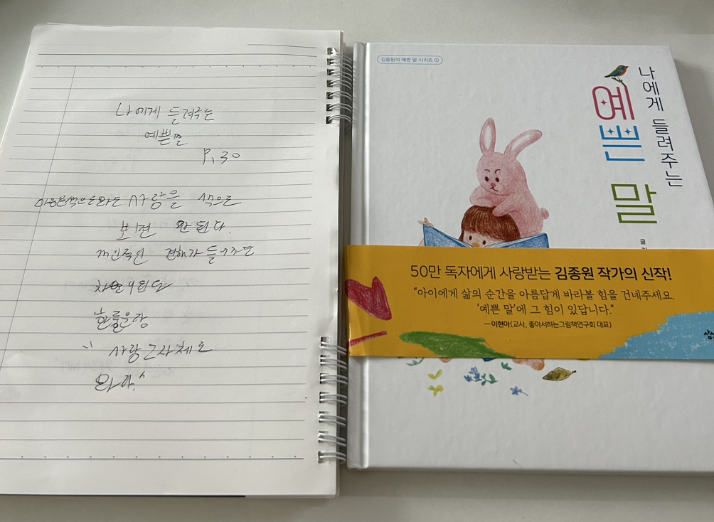 2. 나에게 들려주는 예쁜 말 30p 를 읽고 고1 필사