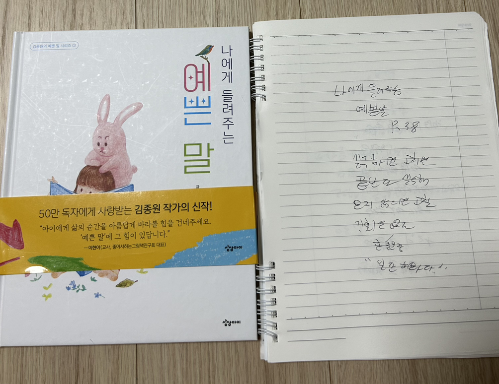 나에게 들려주는 예쁜 말 38p를 읽고 고1 필사
