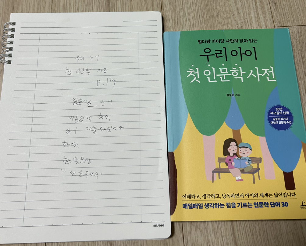2. 우리 아이 첫 인문학 사전 119p 를 읽고 고1 필사