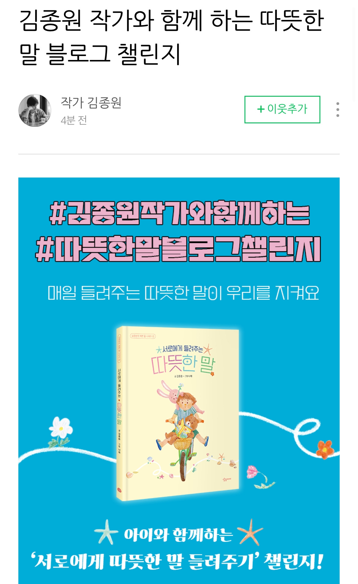 5. 김종원 작가와 함께 하는 따뜻한 말 블로그 챌린지