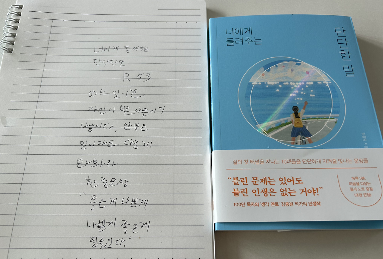 1. 너에게 들려주는 단단한 말 53p 를 읽고 고1 필사