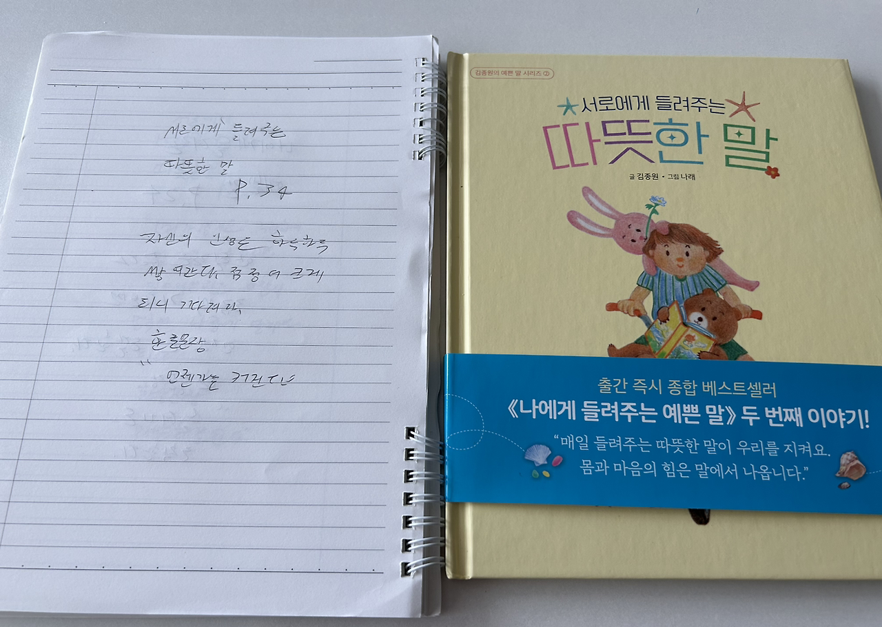 2. 서로에게 들려주는 따뜻한 말 34p 를 읽고 고1 필사 (김종원 작가님 저서)