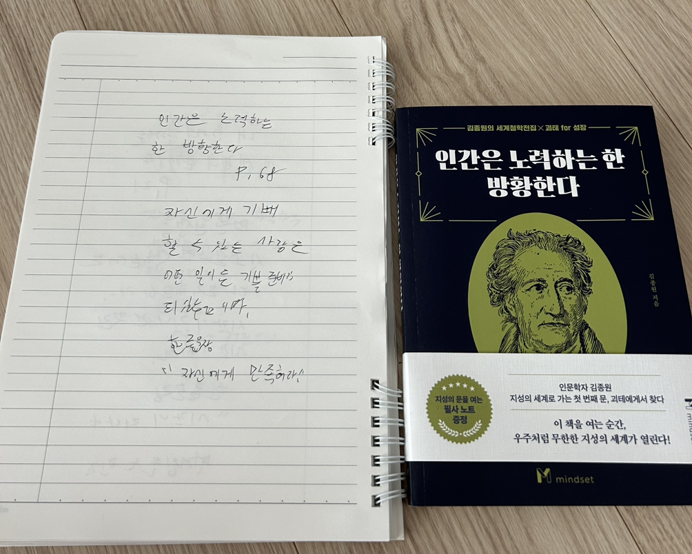 1. 인간은 노력하는 한 방황한다 68p 를 읽고 고1 필사 (김종원 작가님 저서)