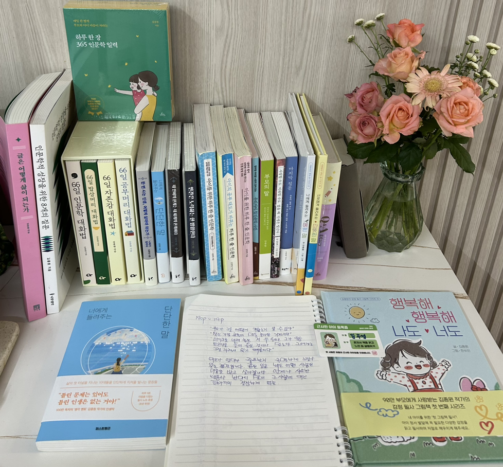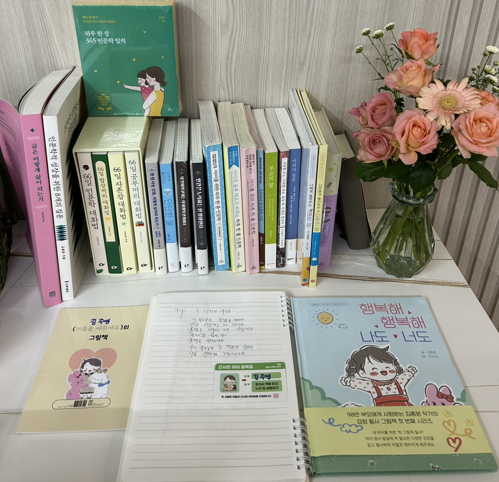 퇴근 후 오후 2시부터 한 시간 나를 위한 시간을 예약했다. 늘 가득한 하루에 밤길 지친 몸을 기대이고 난 새벽 그리고 아침까지 좋은 글이 밤새 많이 도착해 있었음을 늦게 본다. 김종원 작가님 새 책 그림 필사 동화 <행복해 행복해 나도 너도> 가져올 책을 챙긴다는 게 함께 출근하지 못했다. 아쉬운 만큼 마음 다해 가져올 때까지 오늘을 함께 할 것이다.