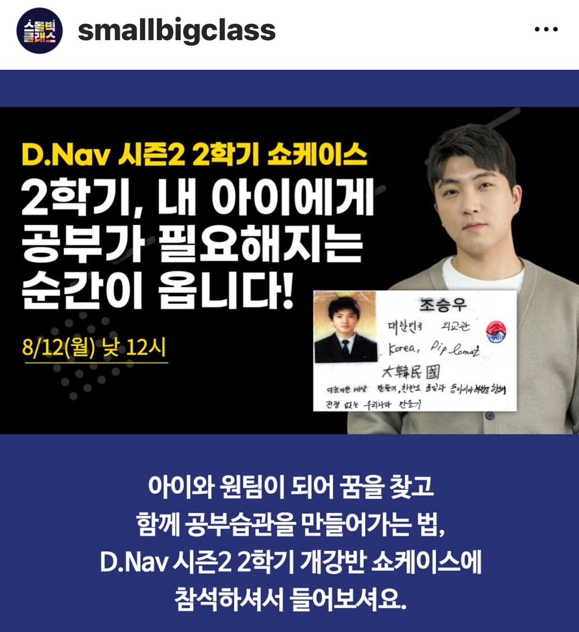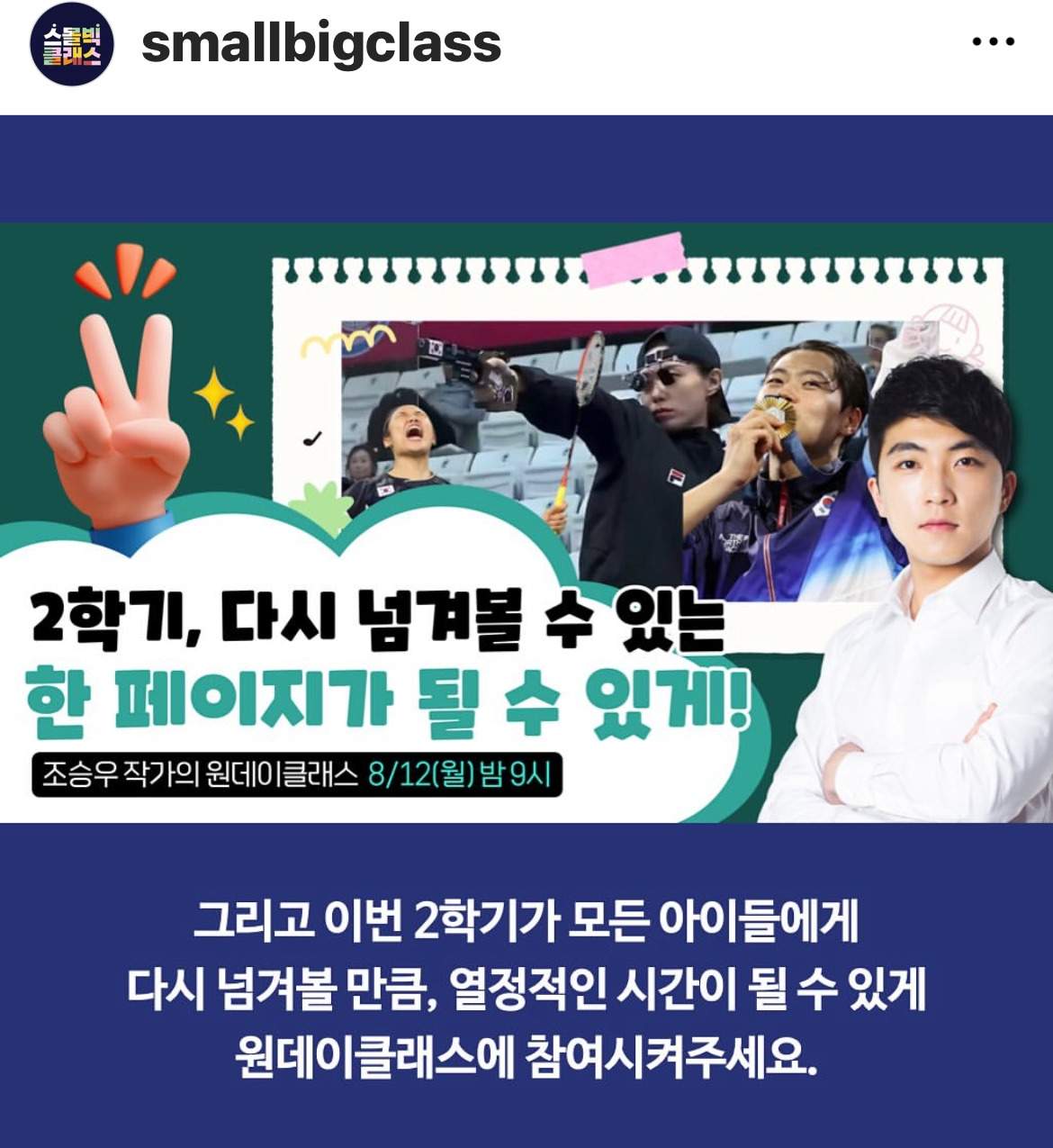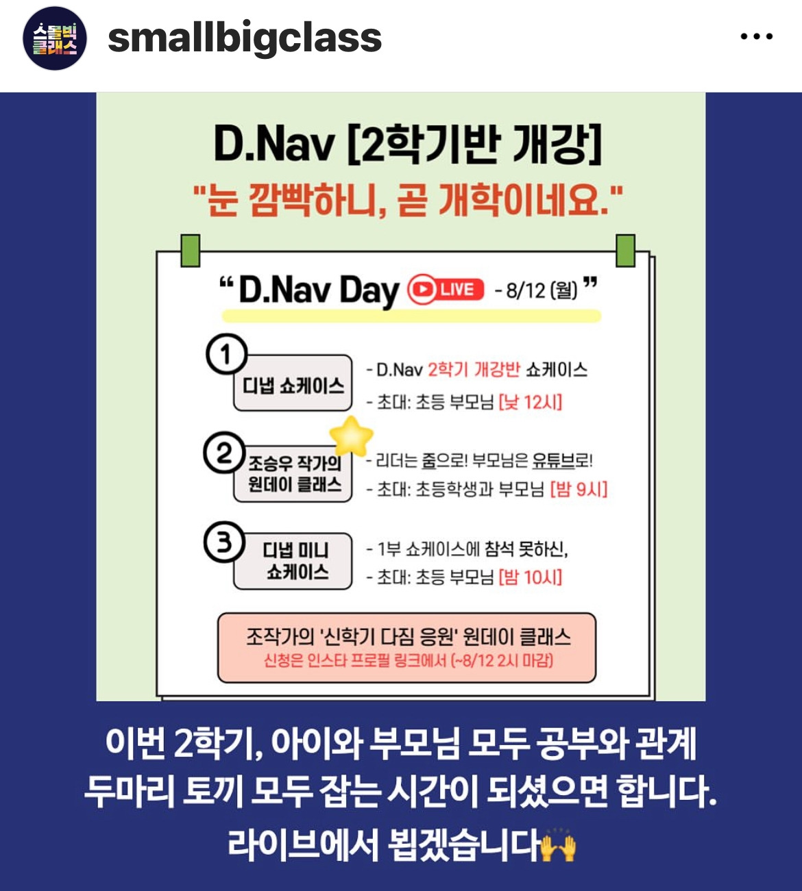 아이와 엄마를 위한 마음우체국 2학기 스몰빅 클래스 조승우 작가님 D Nav 시즌2 모집 원데이 클래스 8월 12일 라이브강의 안내입니다^^