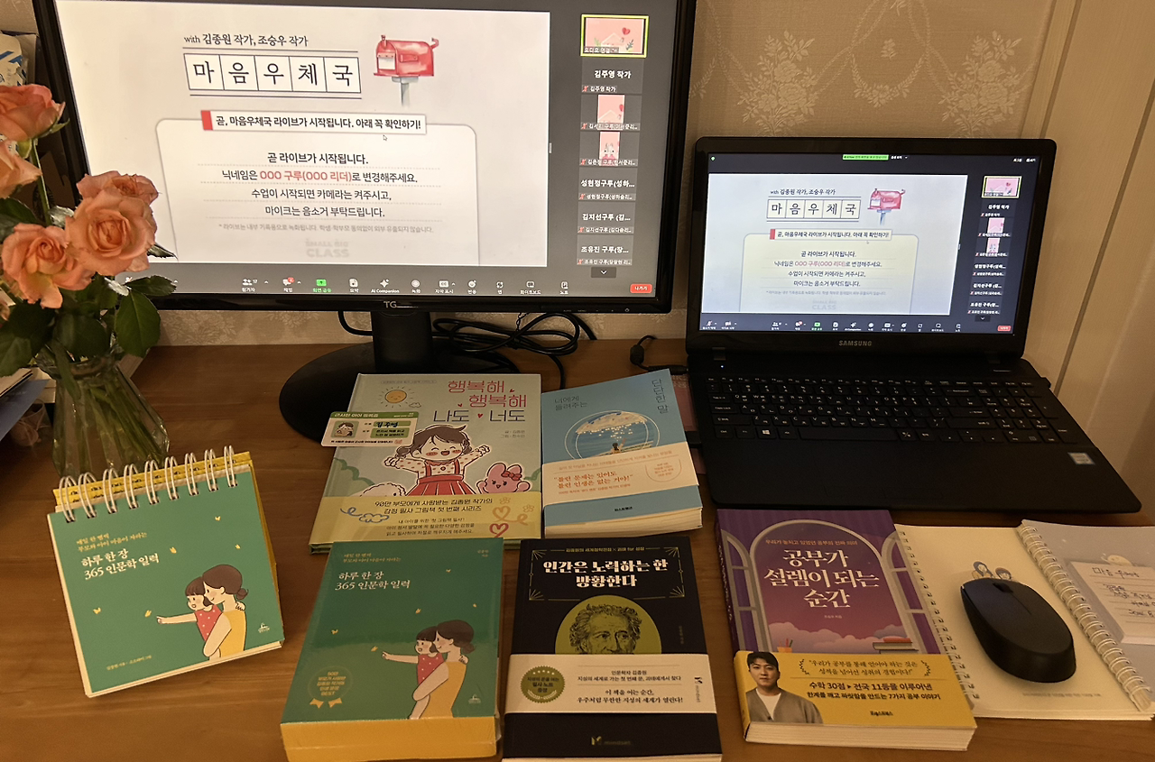 오늘 강의 주제가 공부인만큼 철학적 사유의 질문 덩어리를 쪼깨어 하는 모든 삶의 공부 즉 인생을 잘살며 가장 나답게 사는 공부를 질문하고 풀어 알기 쉽게 강의해 주셨다. 인문으로 가는 시작이 언제나 필사 낭송 글쓰기 독서이듯 마음 우체국에서 하는 교환일기, 플래너, 체크리스트의 꾸준한 날들이 역시 공부하며 사는 한 사람의 남다른 골든타임이자 성공과 성장 꿈으로 가는 오늘의 열차에 탑승하는 나의 자본이자 루틴이 될 것이다. 늦은 밤 9시 200여명의 구루님과 리더님이 참석해 조승우 작가님과의 멋진 강연을 함께 하며.