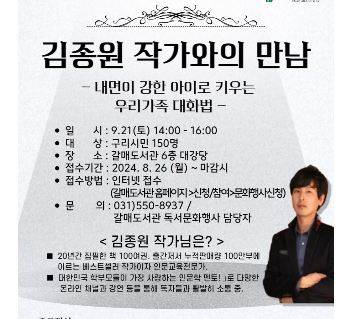 구리 갈매 도서관 독서의 달 기념 하단 링크 9월 강의 안내
