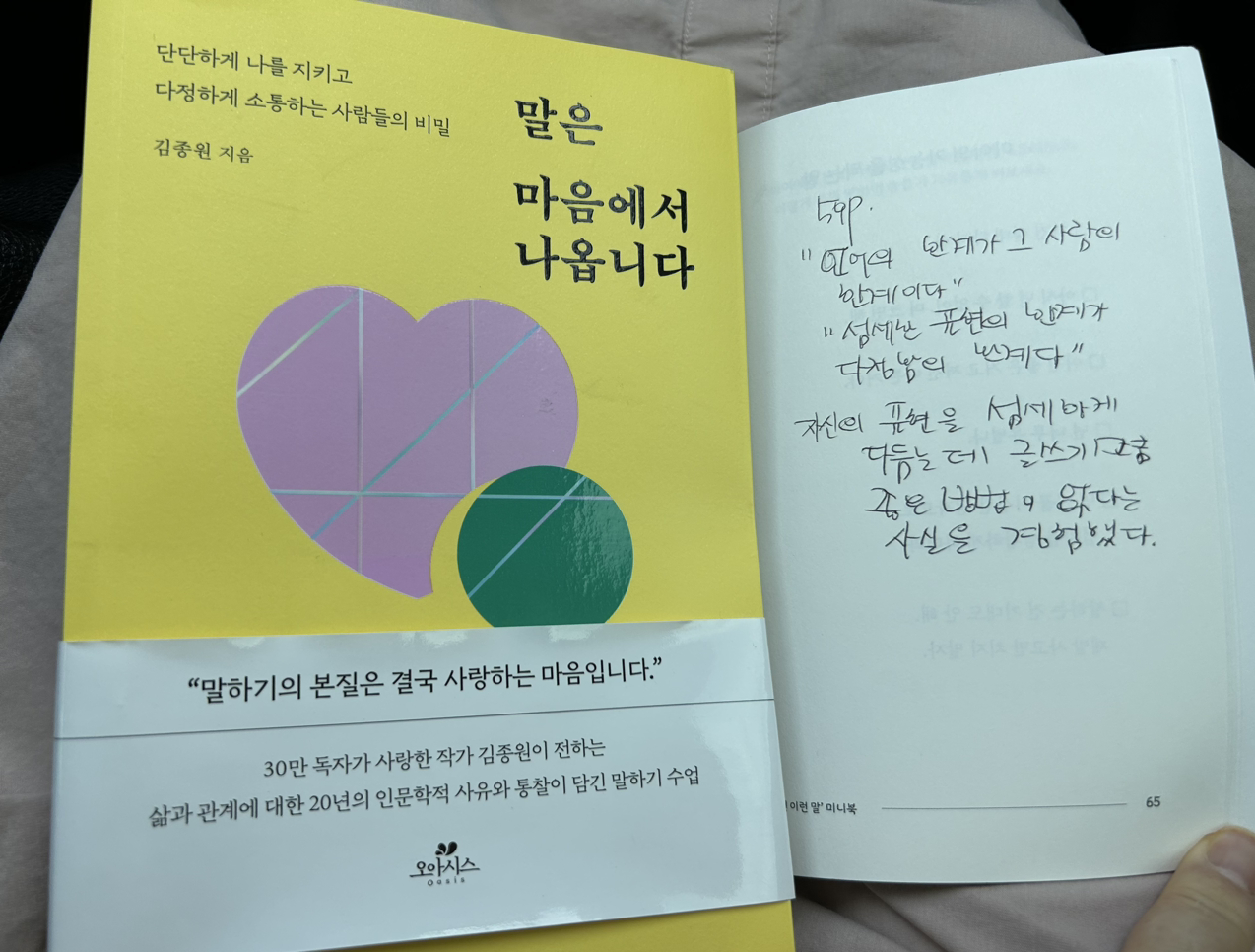 같이 김종원 작가님 책을 낸 20 주년 기념 저서인 <하루 한 장 365 인문학 일력 완전 개정판> 글을 낭송하는데 이틀 연속 같은 페이지를 낭독했다. 그래서 같은 글을 다시 만나 볼 수 있으니 누가 시키지 않아도 얼마나 좋은 가능과 기회를 맞는일인가